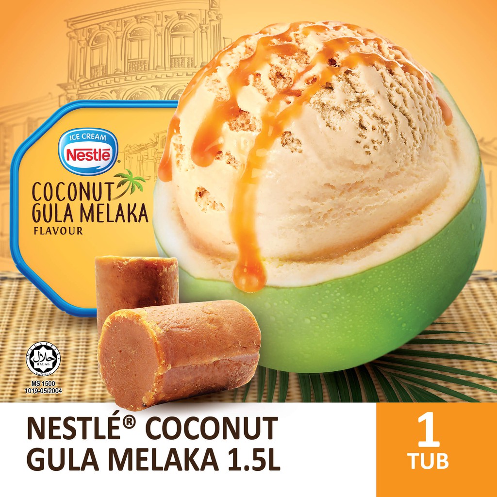 Its simply amazing by its own and you can make delightful dessert out of it Perfect for sharing with family and friends at an affordable price of RM 850 only. Order by Tub Nestlé Coconut Gula Melaka - 1 Tub 15L Delivery takes 3 - 7 working days depending on your location. Nestle Coconut Gula Melaka ice cream.